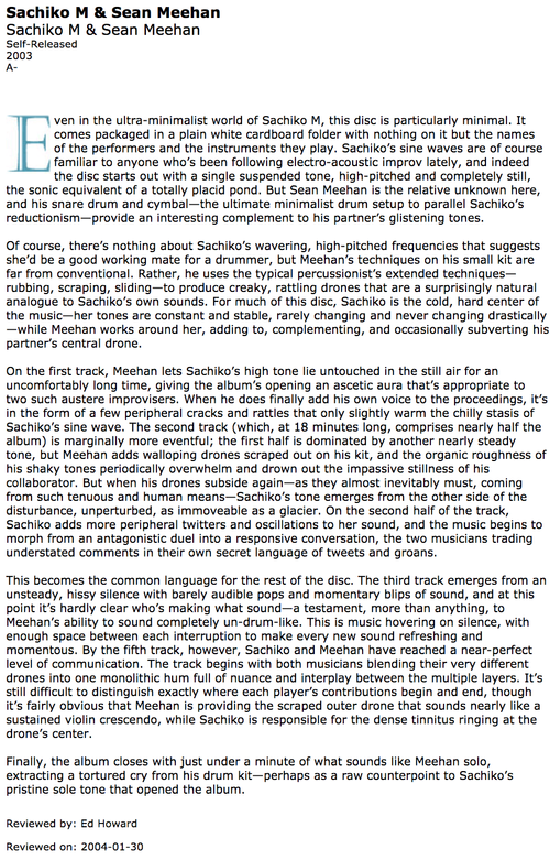 I contributed one composition for sine waves and snare drums.